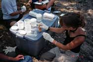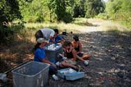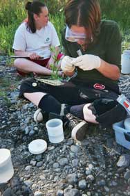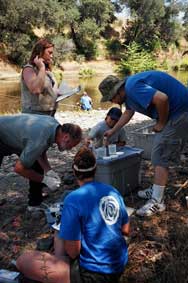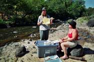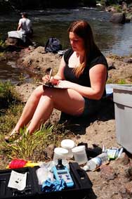 Volunteers measured water chemistry at each monthly monitoring station. Triplicate measurements were taken to capture any variability in the water conditions and to ensure proper use of equipment and sampling protocols. Field temperature, dissolve oxygen (DO), pH, conductivity (EC), and total dissolved solids were measured in the field. Samples for nutrient testing and coliform bacteria were collected and put on ice for lab analysis later that day.