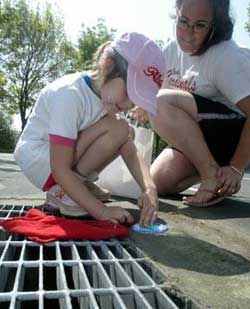 Youth Stream Team students also map runoff areas on their campus, test storm water runoff, and learn about land use practices that can potentially cause water pollution and solutions for preventing urban runoff. On average, 1200 inlets are marked each year. Outlet monitoring takes place during the dry season and is intended to document the condition of the outlet and whether or not there is water present as a result of illicit discharges.